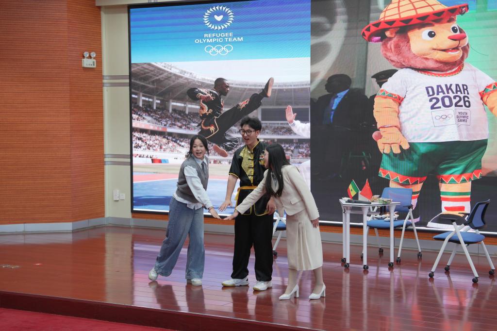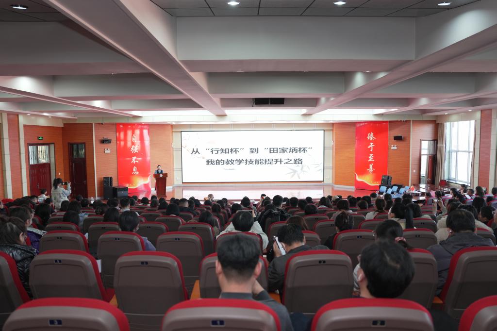 成果展示环节中师生同台,尽显教学相长的蓬勃生机。学生学习成果展示中,体育学院学生李昕的《长拳表演》,将力与美完美融合,展现了体育师范生扎实的专业技能;文学院学生王璐鑫以《从“行知杯”到“田家炳杯”:我的教学技能提升之路》为题,诠释了“以赛促练、以赛促教”的育人实效;教师教育学院李珍盈、外国语学院张钰莹和法学院李世民三位学生联袂演绎的英语短剧《我的夺冠之路》,展现了学生英语应用能力和国际化素养。