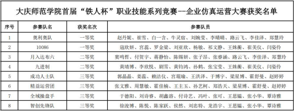 以赛促学强技能,以赛促练育人才。近日,由教务处主办、经济管理学院承办的大庆师范学院首届“铁人杯”职业技能系列大赛--企业仿真运营大赛圆满落幕。本次大赛以提升学生企业运营实践能力为核心,吸引了全校多个学院学生积极参与,历经初赛与决赛两轮激烈比拼,最终决出优胜队伍。