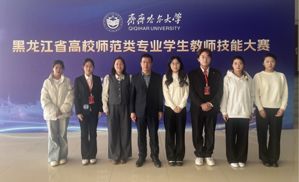 近日,2025年黑龙江省高校师范类专业学生教师技能大赛在齐齐哈尔大学圆满落幕。本次大赛由黑龙江省教育厅高教处、高校创新创业教育指导委员会主办,齐齐哈尔大学教师教育学院承办,旨在搭建“以赛促学、以赛促教、以赛促研”的交流平台,全面检验全省高校师范类专业学生的教学核心素养,为龙江基础教育培育优质后备力量。我校对此高度重视,由教务处长张国发带队参赛,6名参赛选手均从校内“行知杯”师范生教学技能系列竞赛的获奖选手中择优遴选产生。
