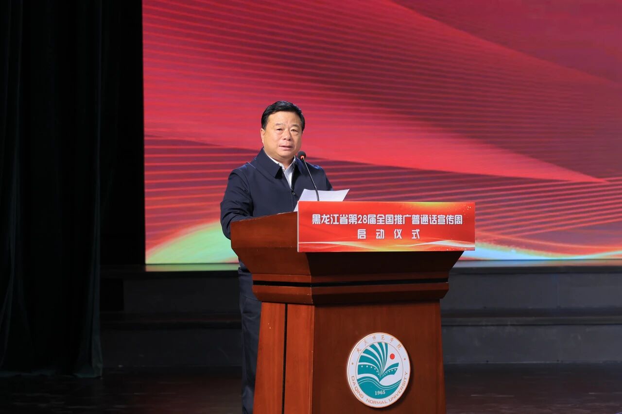 2025年9月15日,以“加大国家通用语言文字推广力度,促进铸牢中华民族共同体意识”为主题的黑龙江省第28届全国推广普通话宣传周启动仪式在大庆师范学院举行。启动仪式由黑龙江省教育厅主办,大庆师范学院、大庆市教育局承办。黑龙江省教育厅副厅长董成出席仪式并讲话,大庆市人民政府副秘书长刘燕、大庆师范学院院长、党委副书记张平分别致辞,大庆市教育局局长高树才出席仪式。启动仪式由大庆师范学院副院长周丹主持。